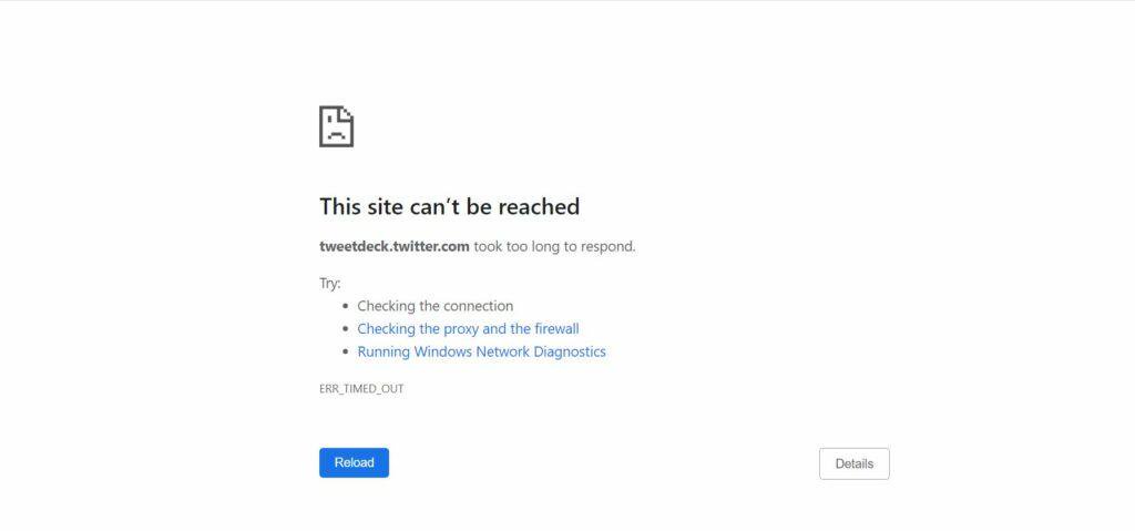 An attempt to refresh tweets returned the message “Tweets aren’t loading right now. Try again” on mobile, while on desktop, it was “This site can’t be reached”.