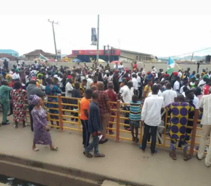 The protesters, who carried only a banner with the inscription: The Republic of Oodua, chanted slogans such as Enough is enough, the suffering is too much. We don’t want to stay in Nigeria any longer. We want Oodua Nation, marched down to Centry, the border point between Nigeria and the Republic of Benin and forcefully opened the gates at the international frontier.